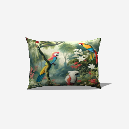 Bring the vibrant energy of the tropics into your living space with our Jungle Vibes Lumbar Pillow. Adorned with a stunning scene of colorful parrots amidst lush greenery, this pillow is perfect for adding a splash of exotic flair to your decor. Its lumbar design offers the ideal support for curling up on the couch, making it a cozy companion for your living room.